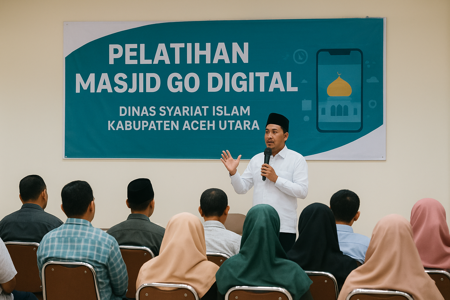 Aceh Utara — Upaya mendorong modernisasi pengelolaan masjid terus dilakukan. Salah satunya melalui kegiatan Pelatihan Masjid Go Digital yang dilaksanakan di Wisma Kuta Karang, Aceh Utara. Kegiatan ini mendapat dukungan penuh dari Dinas Syariat Islam Kabupaten Aceh Utara sebagai bentuk komitmen pemerintah daerah dalam penguatan tata kelola masjid berbasis teknologi.